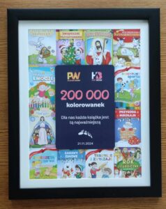 Historyczne świętowanie i dzielenie się radością z okazji sprzedaży ponad 200 000 kolorowanek edukacyjnych. Było rodzinnie, empatycznie i słodko. Dziękujemy Ani i Edycie za graficzne opracowania. Jesteśmy pełni uznania dla autorów tekstów: Marcina, Agnieszki i Beaty. Dziękujemy przedstawicielce ZINGa – Jolancie Białas za bezapelacyjnie najlepsze dobranie papieru do tych produkcji oraz Marcinowi Sobczykowi, który te wszystkie projekty urealnił w postaci przepięknych dzieł dla najmłodszych w Drukarnia Czestochowskie Zaklady Graficzne Sp. z o.o. Tort na tę specjalną okazję przygotowali cukiernicy z Piekarnia Jan Kampa. Życzymy sobie, aby nie tyle fascynowała nas ilość sprzedanych książeczek, ale zadowolenie naszych najmłodszych odbiorców, ich rodziców, nauczycieli w przedszkolach, katechetów.
