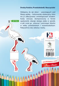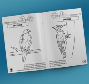 Oddajemy do rąk dzieci kolorowankę edukacyjną, która ma je zafascynować ornitologicznym światem. Prawdziwy, pierwszy mały katalog ornitologiczny dziecka w wieku przedszkolnym i wczesnoszkolnym. Opisy ptaków są napisane w formie wierszyków. Dodatkowo są tak skomponowane, aby tworzyły zwartą zgadywankę, z której rozwiązania wyjdzie nazwa danego ptaka. Zwierzęta są ukazane w sposób, w jaki postrzega je dziecko. Połączyliśmy więc zabawę z nauką.